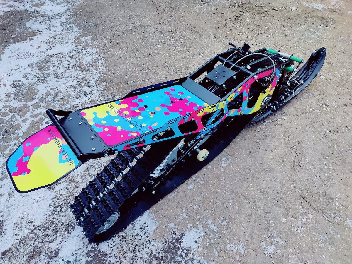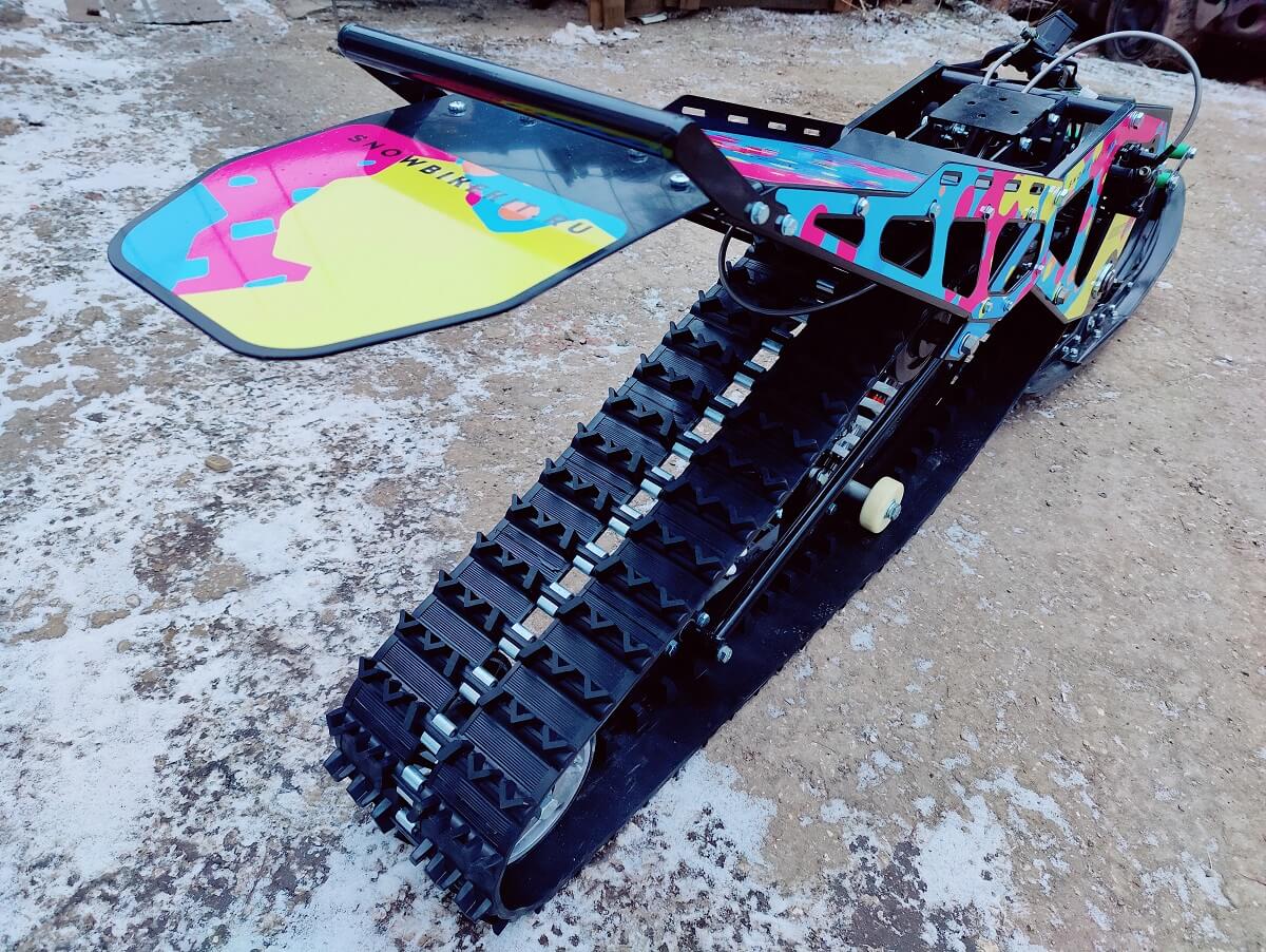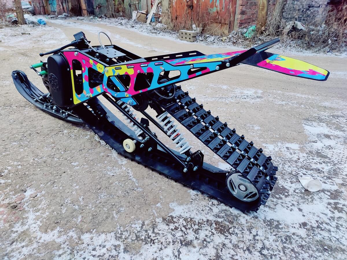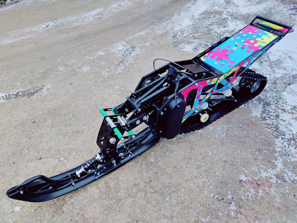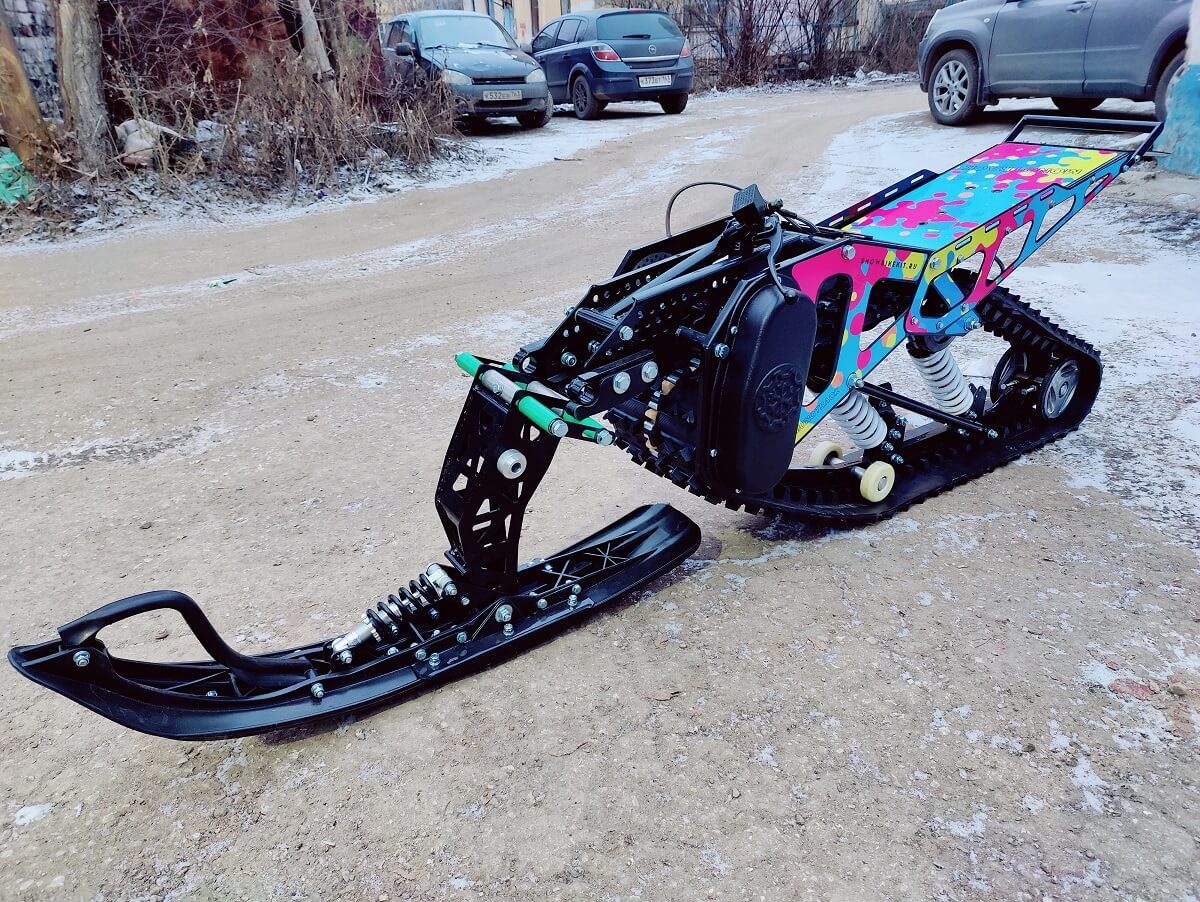 - боковые коньки лыжи под 45 градусов, что позволяет более эффективно удерживать сноубайк в повороте при наклоне