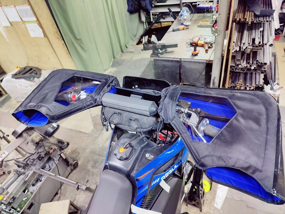 Специальные варежки на руль мотоцикла, для катания зимой на сноубайке. Вы можете использовать летние перчатки внутри варежек, чтобы комфортно использовать ручки руля и не мучится с толстыми перчатками.