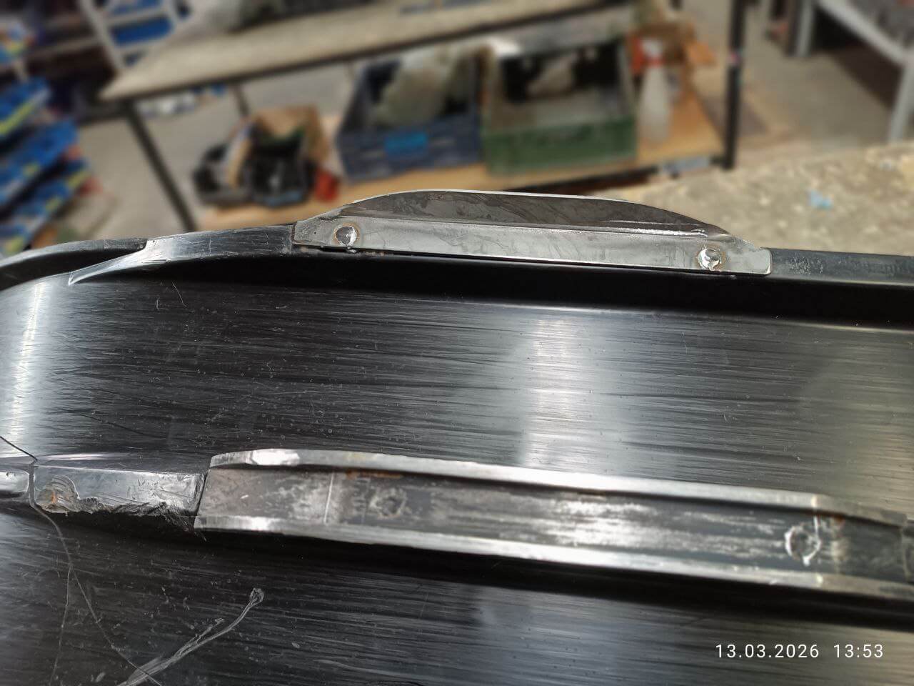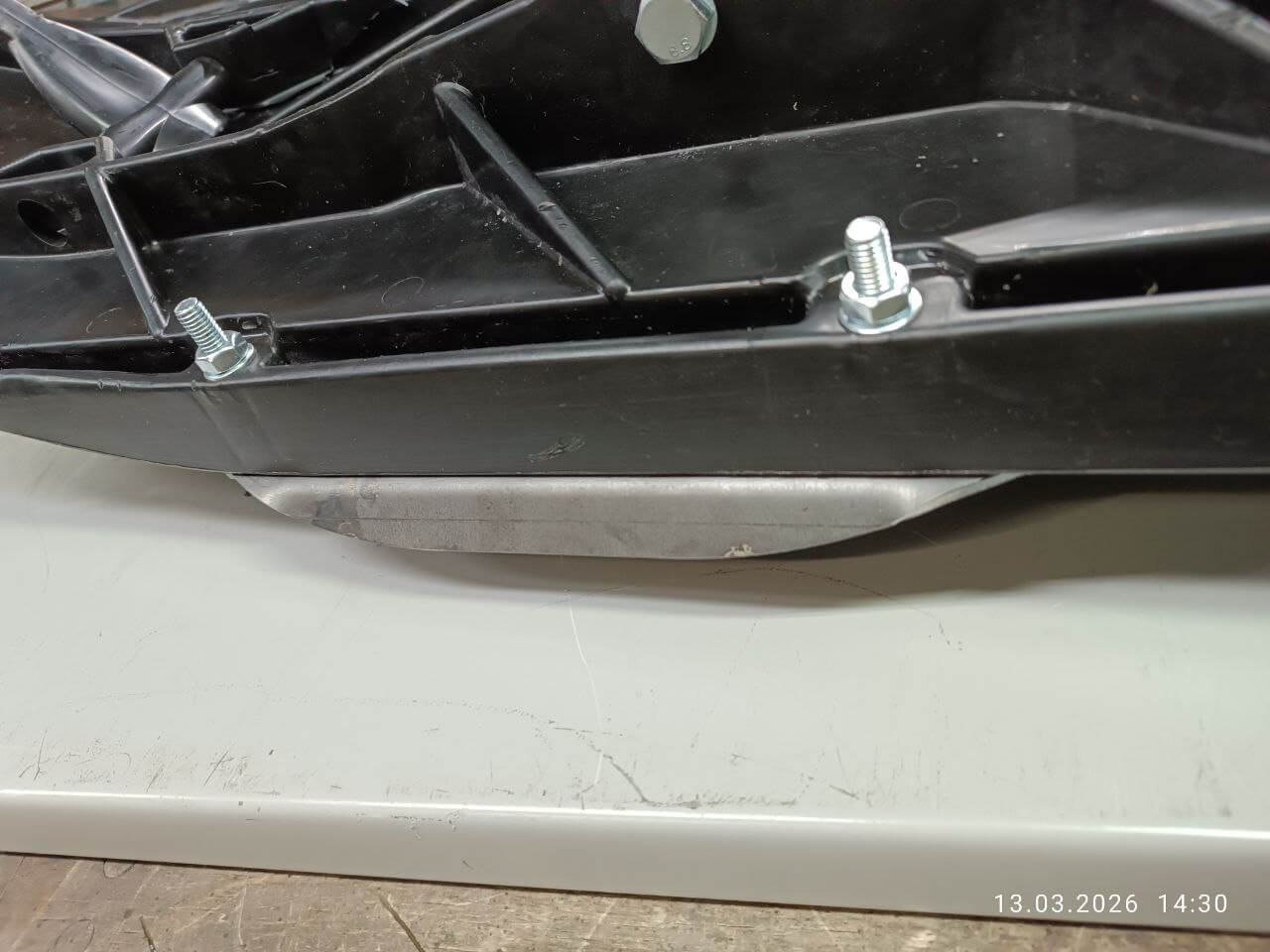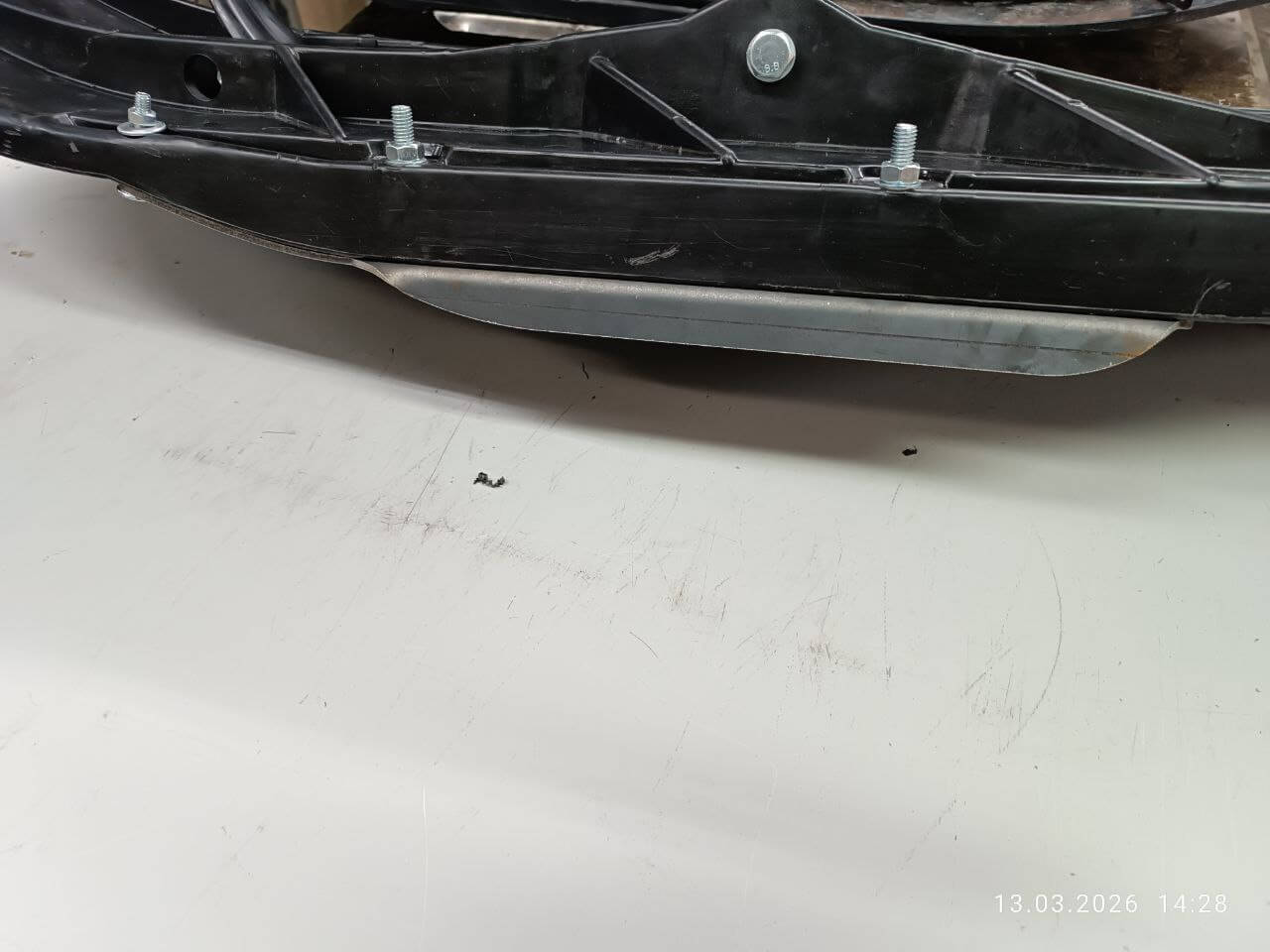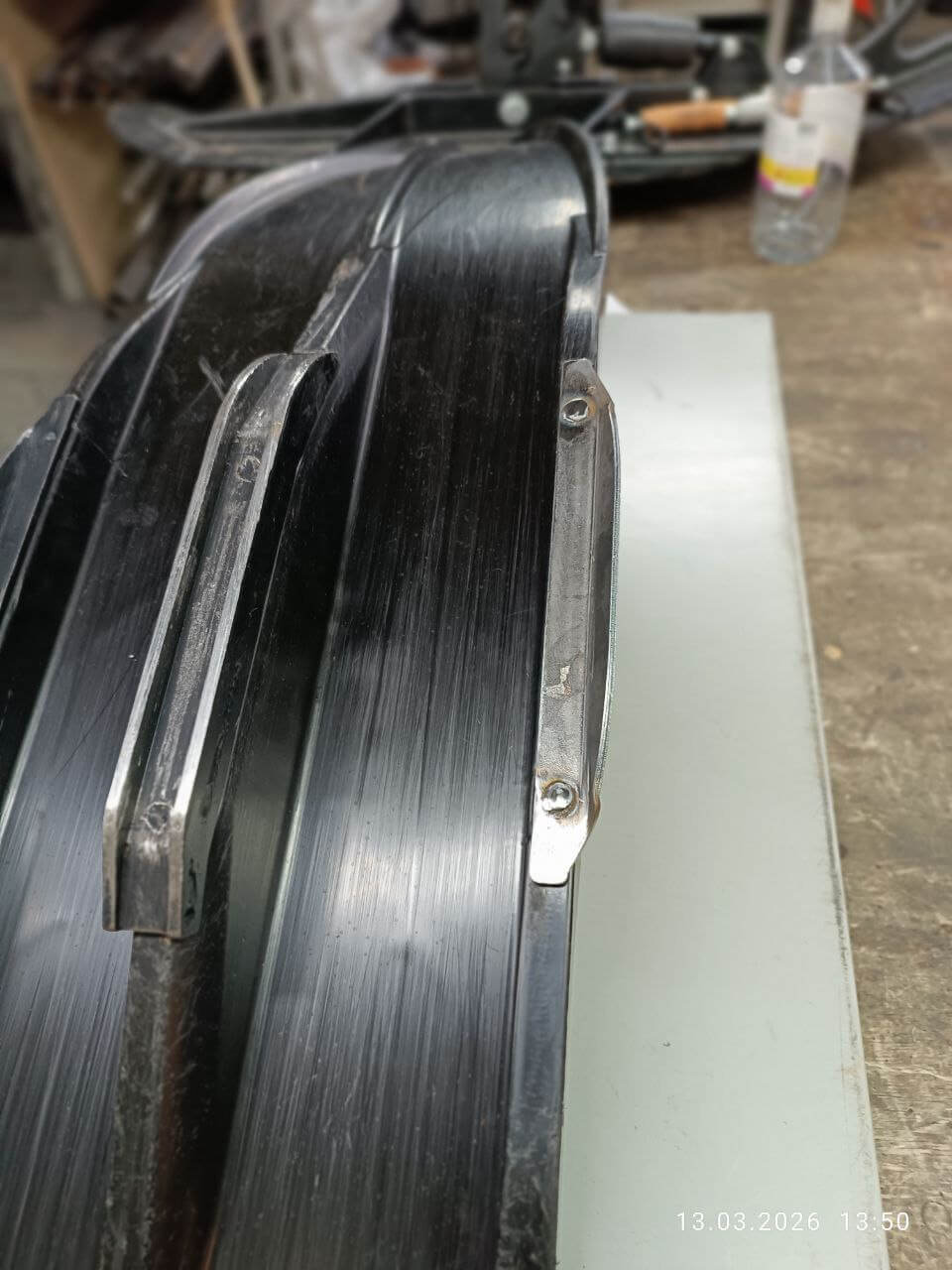 1. Удлиненный. Добавили выпуск вперед чтобы усилить, и сгладить неровный перепад. Спереди отверстие под мебельный винт М6, под рассверловку. При ударе подъемом лыжи будет держать не только пластик но и сталь 2 мм. Не симметричный с гибом под 90 градусов. Стоимость 3000 за пару. https://snowbikekit.ru/shop/extended-skates-htld/