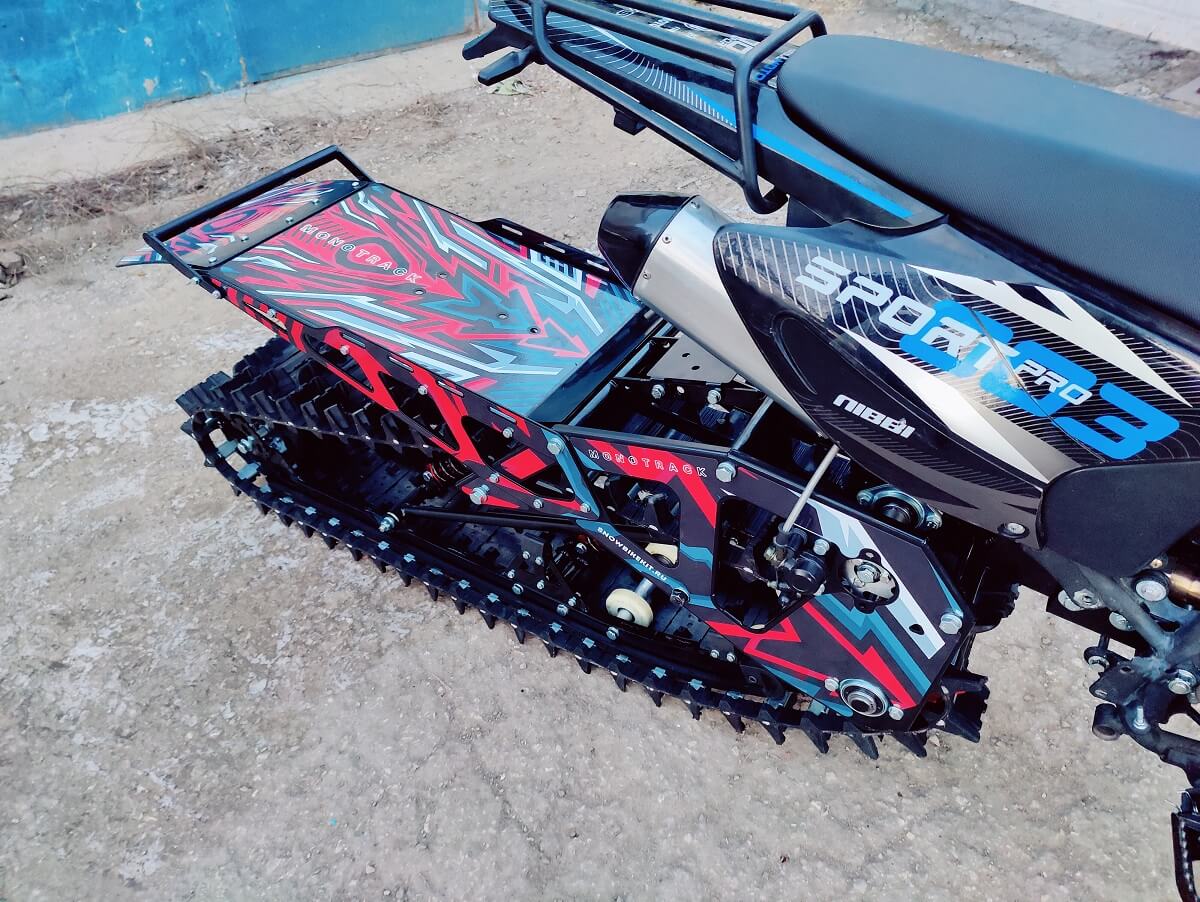 Monotrack TASMAN 45 в комплектации МАХ — это новейшая модель сезона 25-26 гг не имеющая аналогов по соотношению характеристик и стоимости на российском рынке, это универсальный гусеничный комплект для внедорожных мотоциклов категории эндуро, мотокросс средней кубатуры (до 45 л.с.). Гусеничный мотоцикл это (термин сноубайк) относится к категории одноколейный снегоход. Установив сноубайк комплект на эндуро мотоцикл вы получаете возможность продлить мото сезон и наслаждаться катанием не только летом но и зимой.