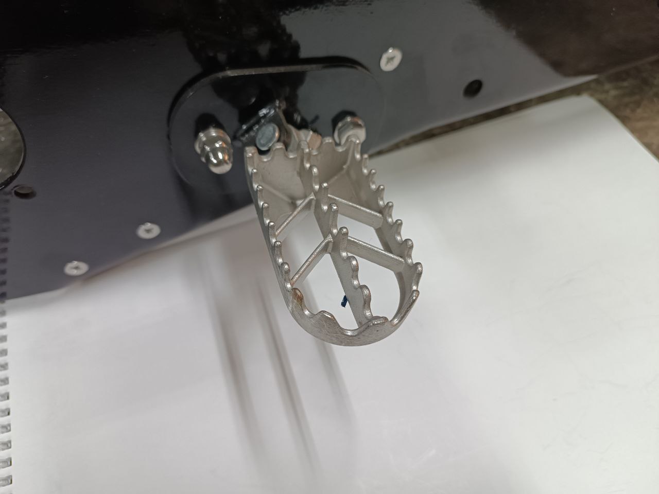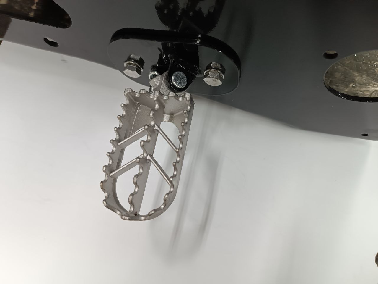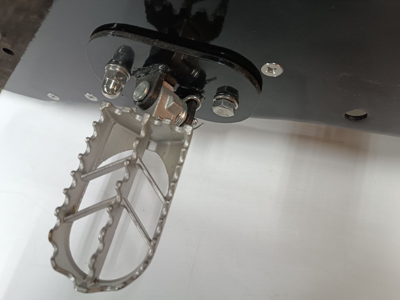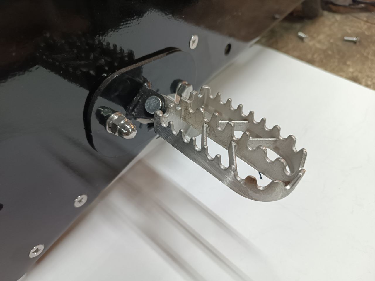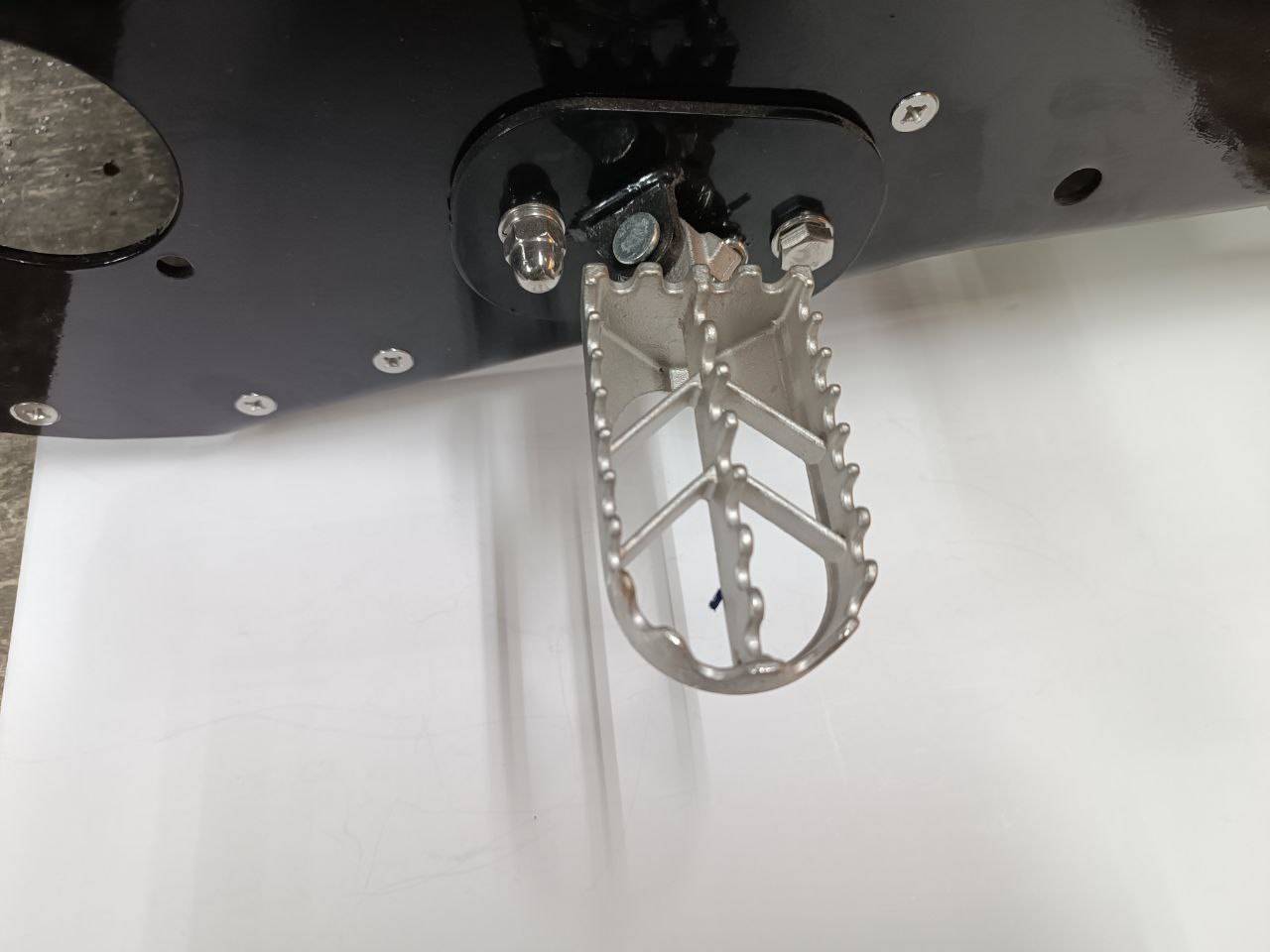 В продаже универсальные крепления Monotrack и подножки для установки на тоннель сноубайка чтобы катать на пятке в рыхлом глубоком снегу. Прочное стальное крепление на двух болтах, позволяет установить стандартные мотоциклетные подножки. Для установки потребуется рассверловка отверстий в стенках тоннеля (Ф8 мм).